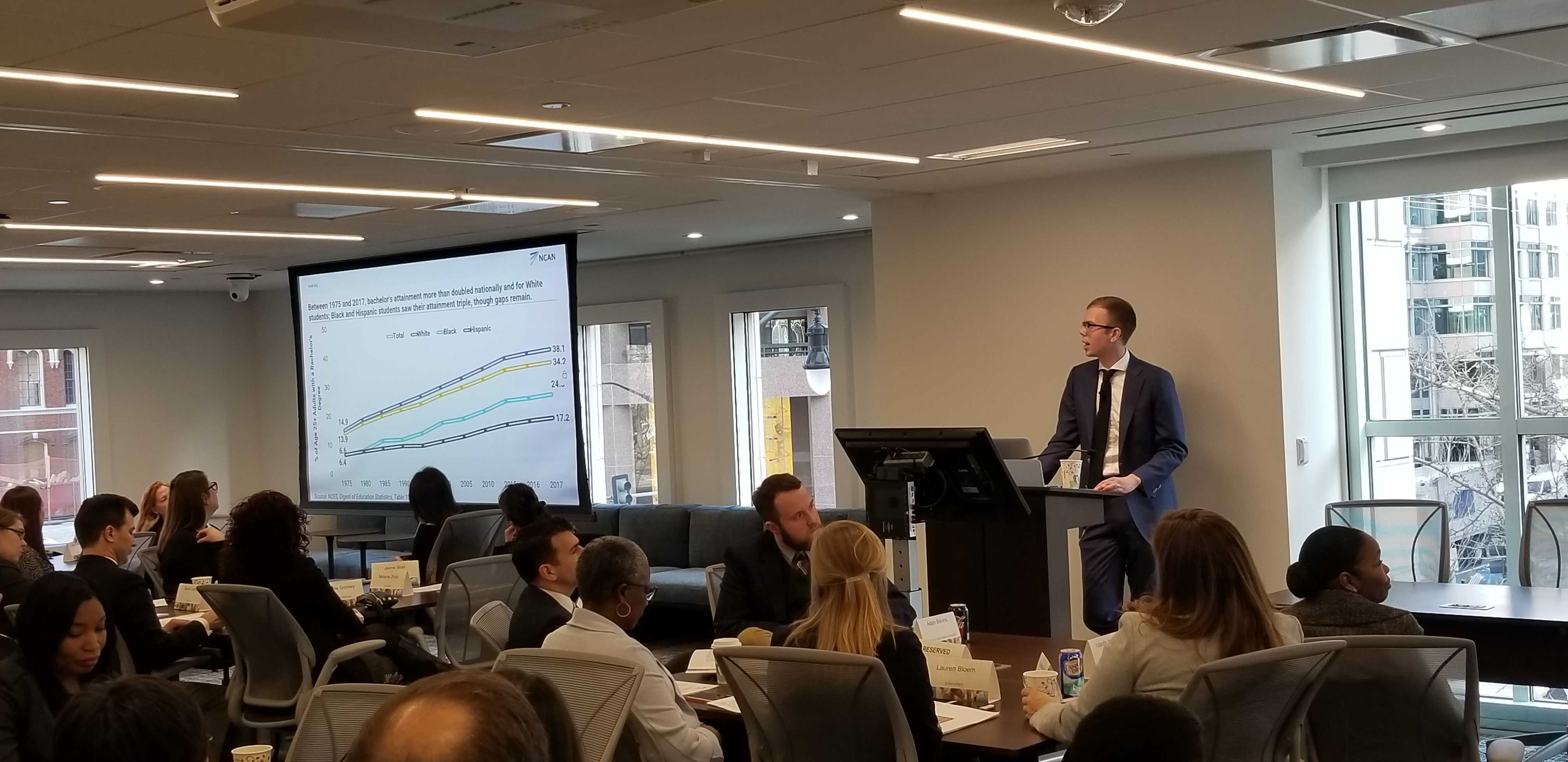 Last month, dozens of K-12 and higher education stakeholders joined NCAN at the Bill & Melinda Gates Foundation’s Washington, D.C., office to discuss “the data that matter and the plans that work” during an event focused on school districts and partner organizations using big ideas to prepare students for success beyond high school. This event convened various education stakeholders to learn about NCAN’s insights and lessons learned from nearly two years of the To & Through Advising Challenge. The event also served as a release of a white paper profiling five Advising Challenge participants.