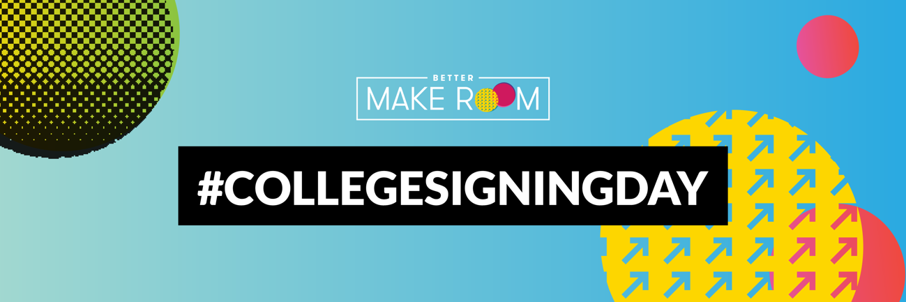 Reminder: Feel free to post on Twitter, Facebook, Instagram, and Snapchat and tag @ReachHigher and @BetterMakeRoom. Use the hashtags #CollegeSigningDay and #BetterMakeRoom so that everyone can follow along with your celebration. (Check out sample social posts and graphics from Better Make Room.)