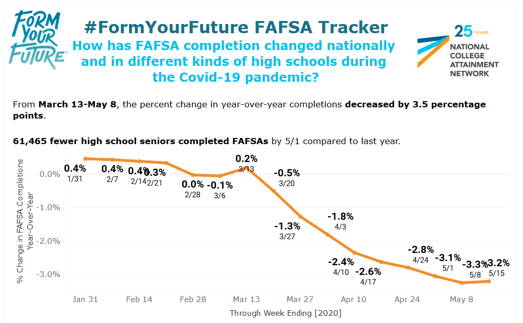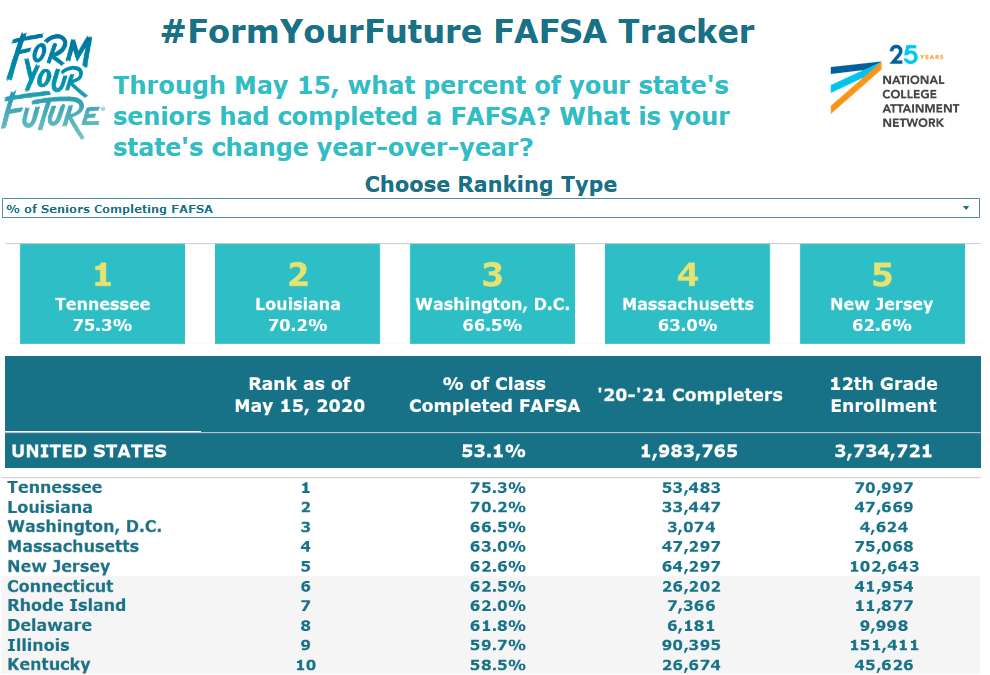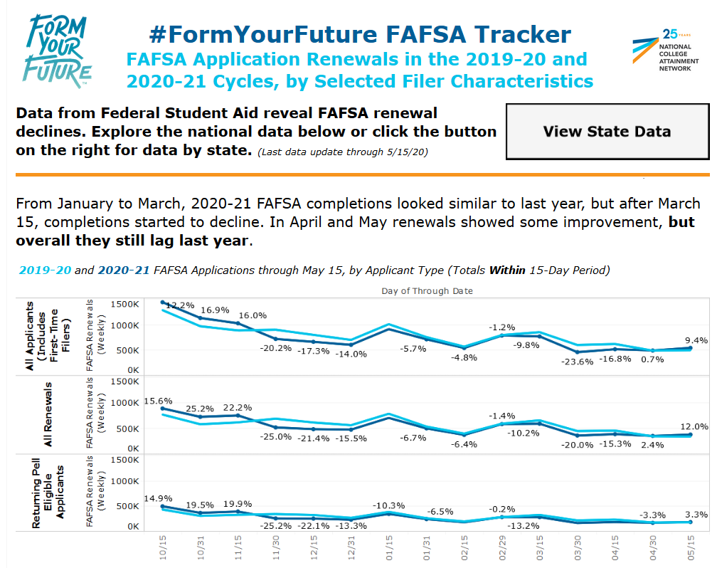 Data are crucial to successful FAFSA completion efforts, and both NCAN and Form Your Future place a strong emphasis on tracking and sharing publicly available FAFSA completion data.