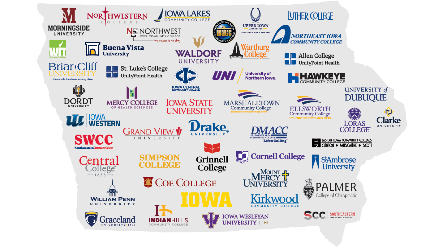 Showcase Iowa colleges and universities. Many of our students may not know all of the schools available to them in their state. Creating a map/collage of colleges