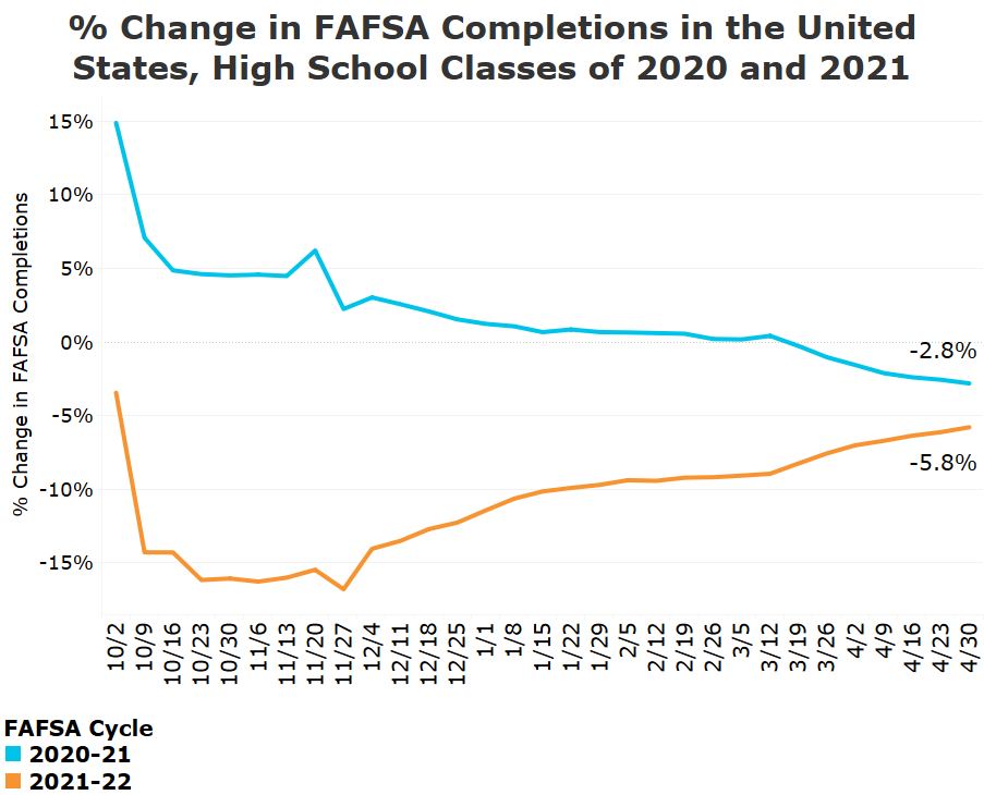 it was coming against a period in which FAFSA completion was in freefall last year.