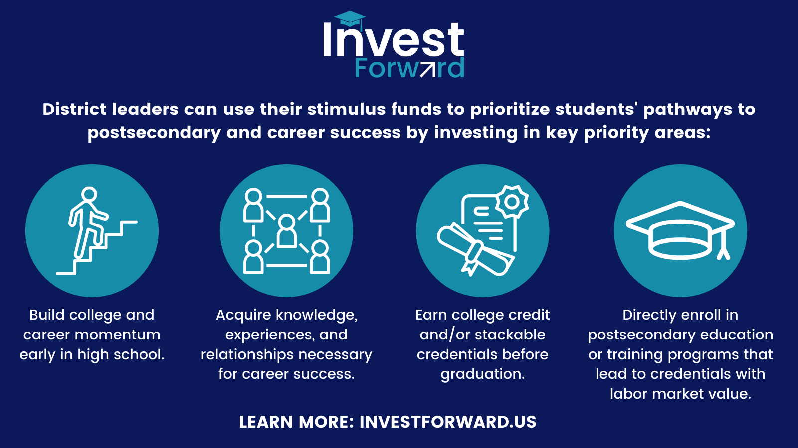 School Emergency Relief (ESSER) funding included in the American Rescue Plan (ARP) and other stimulus legislation is a critical opportunity to invest in students’ postsecondary pathways.