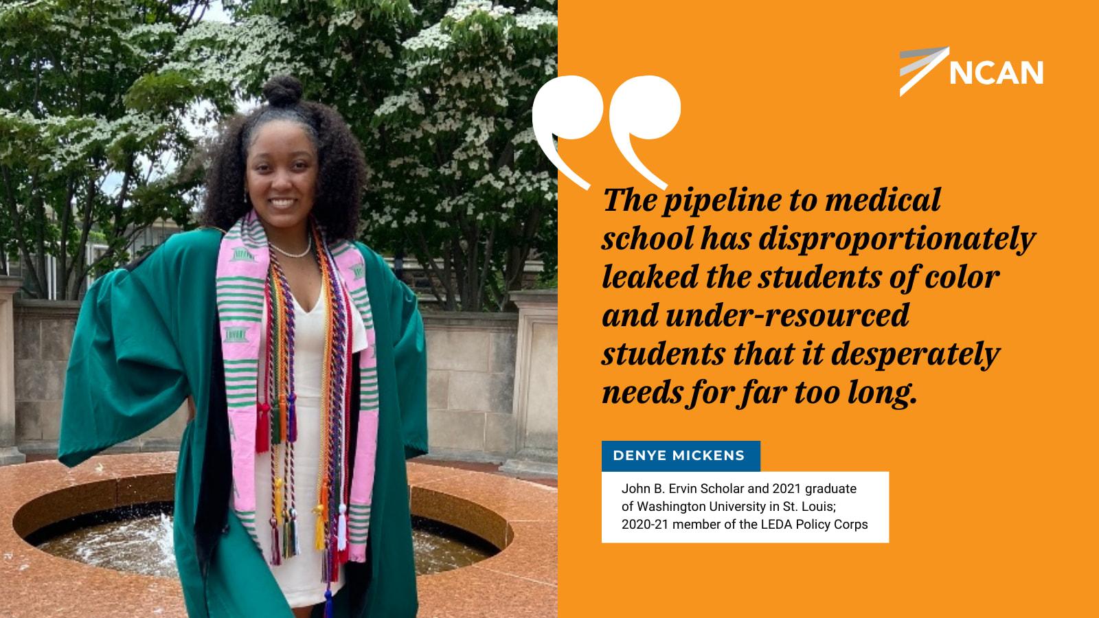 By Denye Mickens, John B. Ervin Scholar and 2021 graduate of Washington University in St. Louis; 2020-21 member of the LEDA Policy Corps and a National College Attainment Network student advocacy fellow