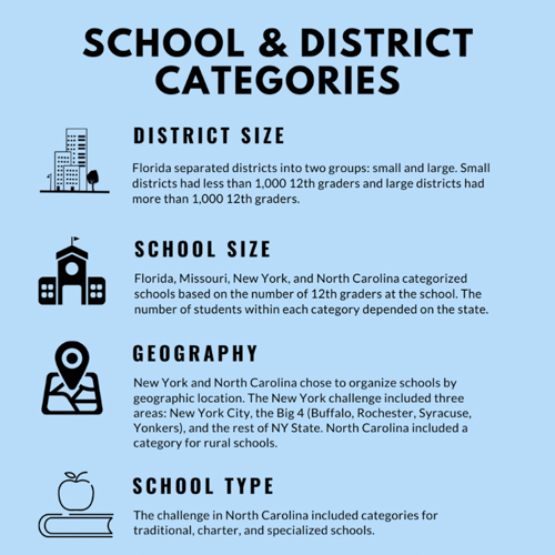 States are also intentional about segmenting schools and districts into categories to compare FAFSA completion rates more fairly. Winners are then chosen for each category.