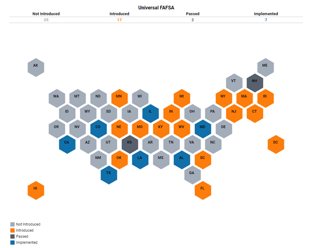 Not Introduced: To this point, the state has not begun to consider implementing a Universal FAFSA policy.