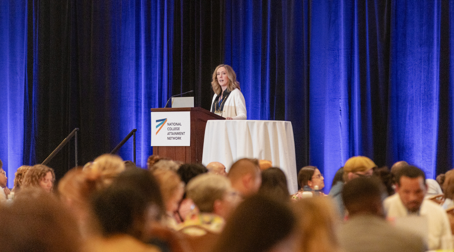 James Kvaal. In his speech, Kvaal touched on the importance of the work NCAN and our members do, the changes coming to the Better FAFSA, and the challenges that lie ahead. He was introduced by NCAN’s Communications Intern Alondra Vallejo, who is a