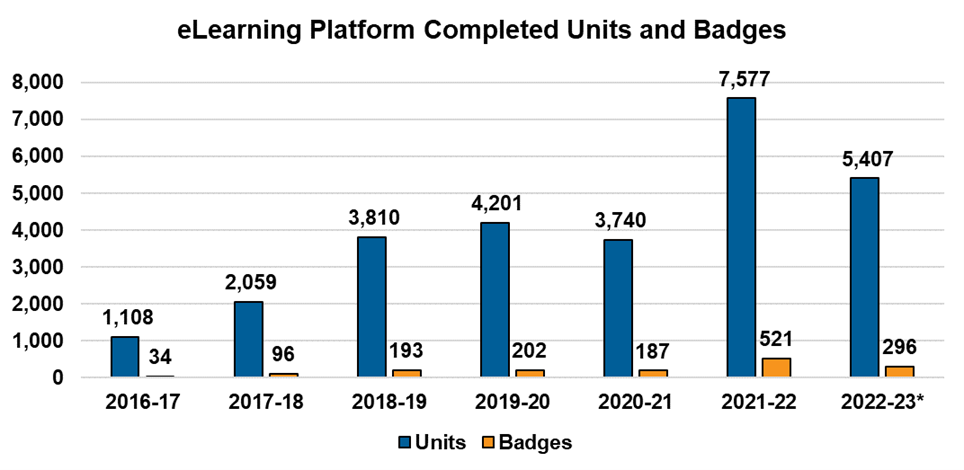 NCAN’s eLearning platform has also continued to receive strong use (see chart below). With 25% of the year left to go, the system has already recorded 71% of last year’s record-high unit completions. The most popular units remain those related to postsecondary admissions advising and financial aid.